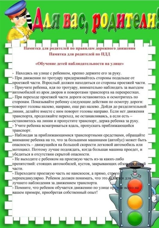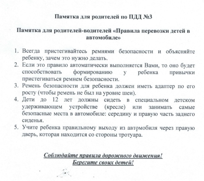 Памятка родителям по обучению детей безопасному поведению на дороге